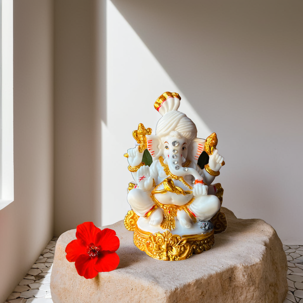 Perfect for home temples, living room displays, or workspaces, this Ganesha idol also makes a meaningful housewarming gift, festive offering, or a thoughtful token for loved ones.